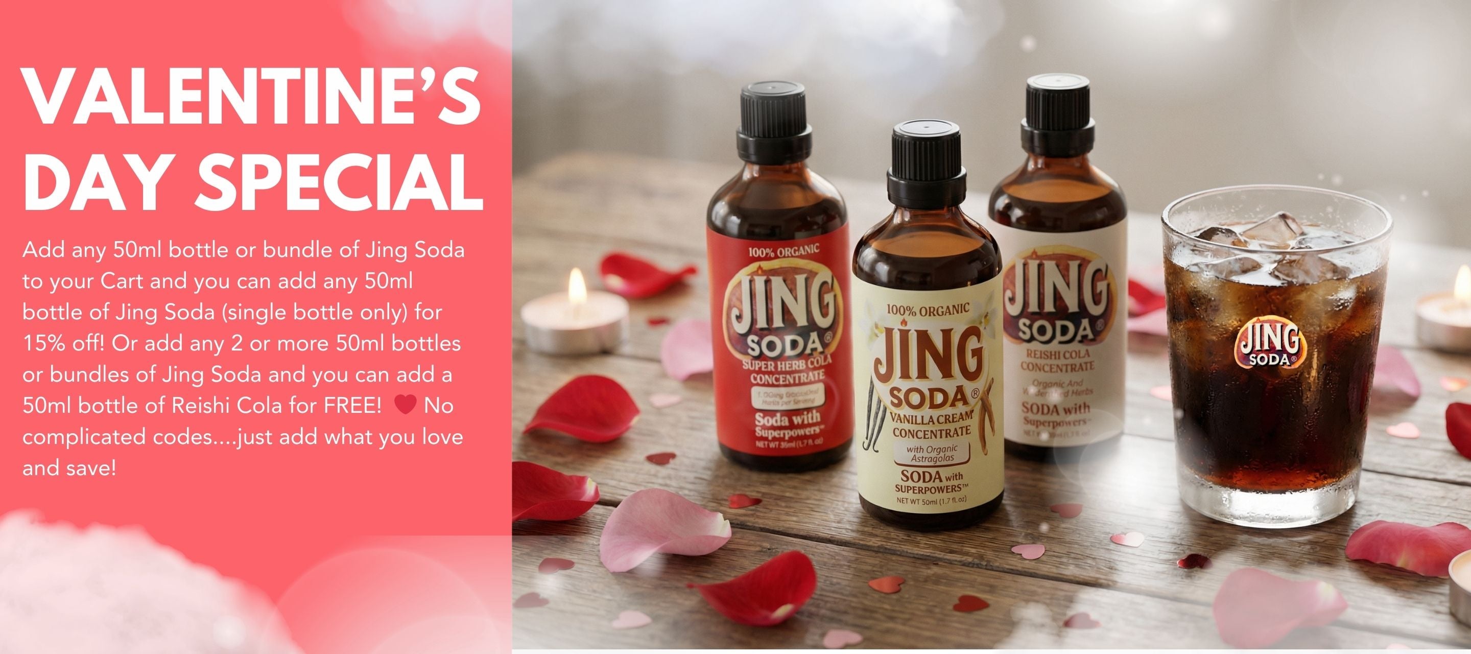 Jing Soda® is made with all organic fruit and plant concentrates and infused with immune-supporting super herbs that nurture and replenish your life energy.
