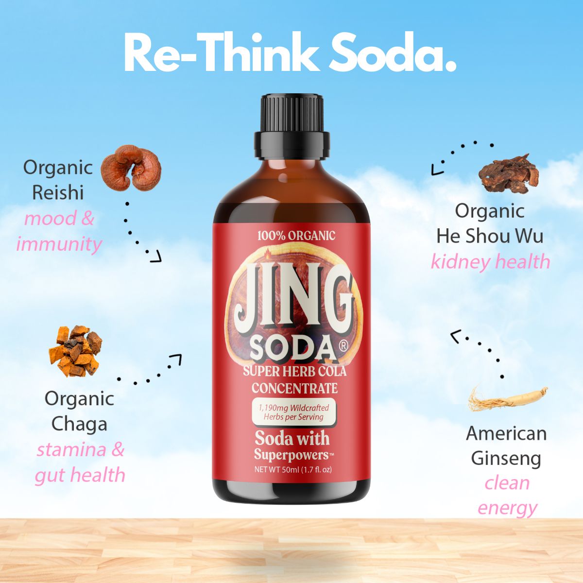 Jing Soda® is made with all organic fruit and plant concentrates and infused with immune-supporting super herbs that nurture and replenish your life energy.